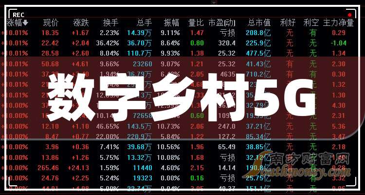 據(jù)南方財富網(wǎng)概念查詢工具數(shù)據(jù)顯示,數(shù)字鄉(xiāng)村5G題材公司有: