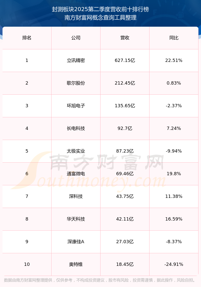 按照南方財富網(wǎng)概念查詢工具統(tǒng)計,該股所屬板塊為封測板塊,該板塊共有39只股票,佰維存儲2025第二季度營收在該板塊中排名為第39名,該板塊2025第二季度營收排名前十的股票如下表: