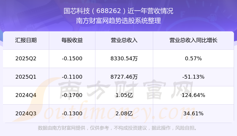 國芯科技股票近一年營收情況如下表: