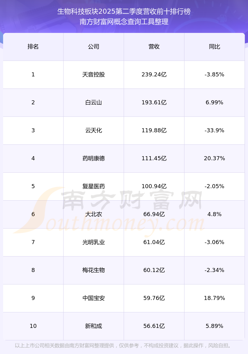 按照南方財(cái)富網(wǎng)概念查詢(xún)工具統(tǒng)計(jì),該股所屬板塊為生物科技板塊,該板塊共有114只股票,奧浦邁2025第二季度營(yíng)收在該板塊中排名為第114名,該板塊2025第二季度營(yíng)收排名前十的股票如下表: