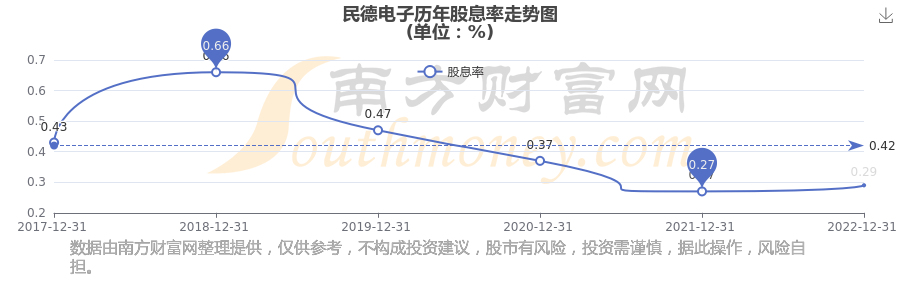 民德電子歷年股息率走勢(shì)如下圖: