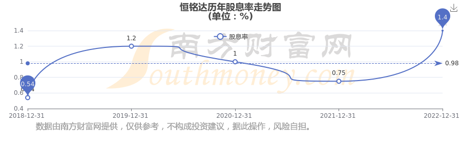 近年恒銘達(dá)年度股息率走勢(shì)如下圖: