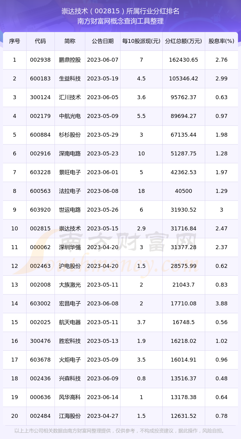 二、崇達技術(shù)002815行業(yè)分紅排名