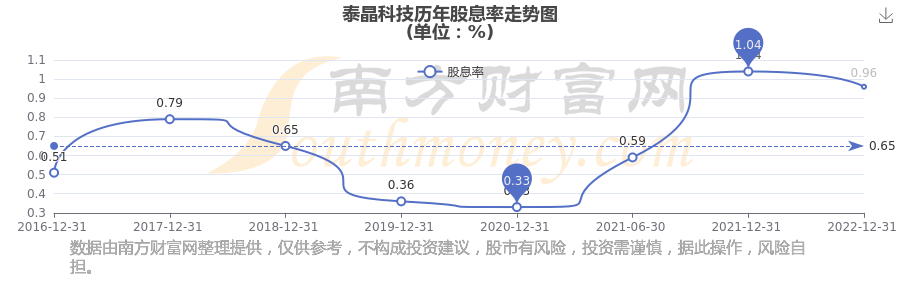 按照南方財富網(wǎng)趨勢選股系統(tǒng)統(tǒng)計,泰晶科技所屬行業(yè)為電子元器件行業(yè),電子元器件行業(yè)分紅排名情況如下表: