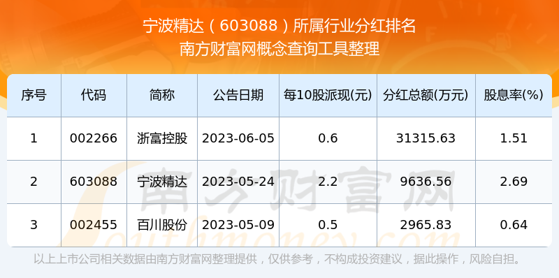 二、寧波精達(dá)603088行業(yè)分紅排名
