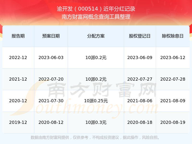 渝開發(fā)最新一次公布的分紅方案:10派0.2元。