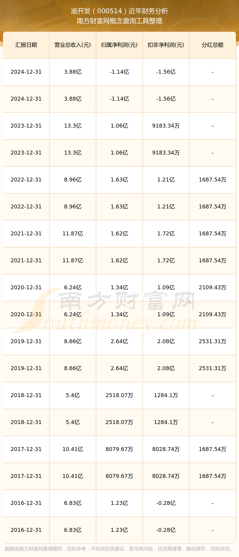 2024年渝開發(fā)總營收3.88億,同比增長-70.79%;凈利潤-1.14億,同比增長-207.71%;銷售毛利率22.9%。