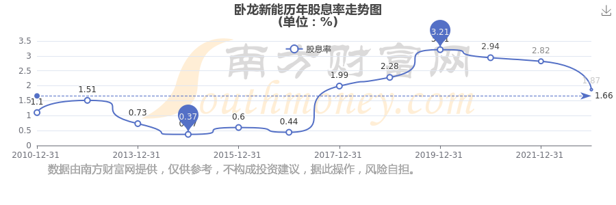 臥龍新能歷年股息率走勢(shì)如下圖: