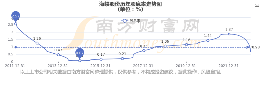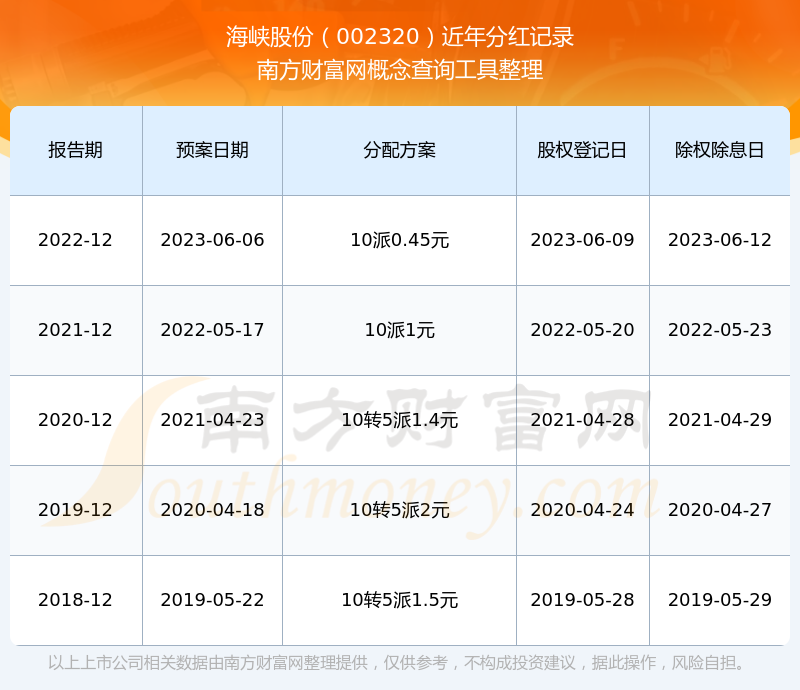 海峽股份最新一次公布的分紅方案為10派0.45元。本次權(quán)益分派股權(quán)登記日為2023年6月9日,除權(quán)除息日為2023年6月12日,派息日為2023年6月12日。