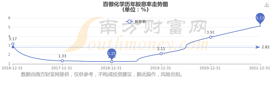 百傲化學(xué)歷年股息率走勢(shì)如下圖: