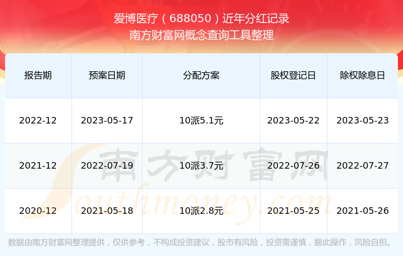 愛博醫(yī)療最新一次公布的分紅方案:10派5.1元。