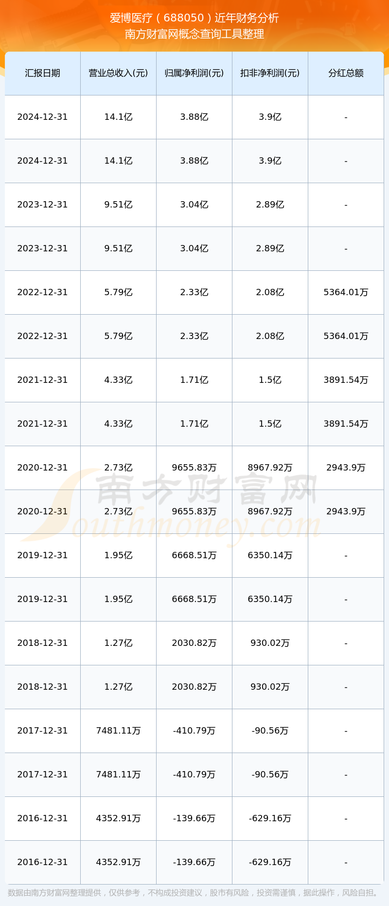 近年愛博醫(yī)療分紅派息情況如下表所示: