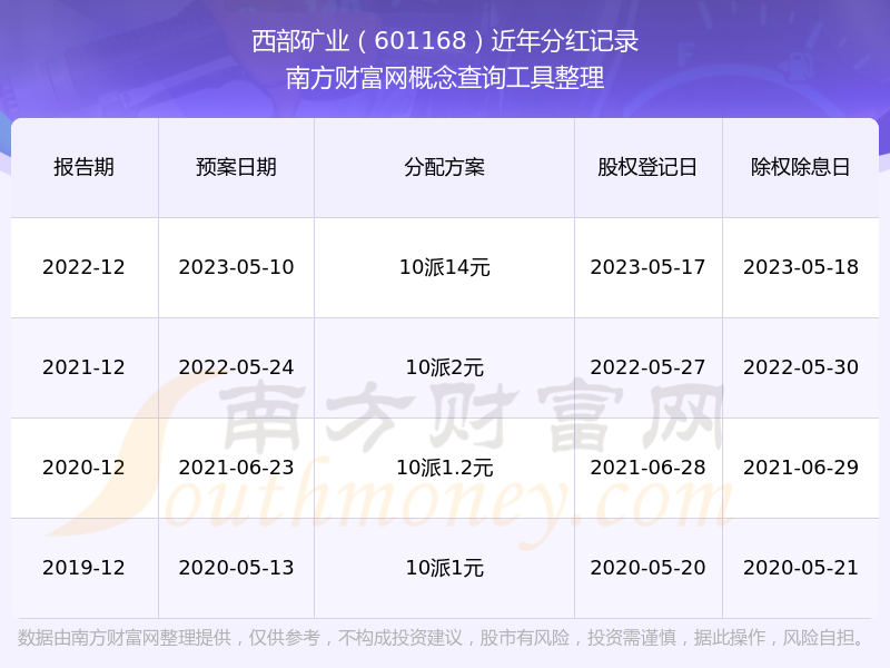 西部礦業(yè)最新一次公布的分紅方案:10派14元。