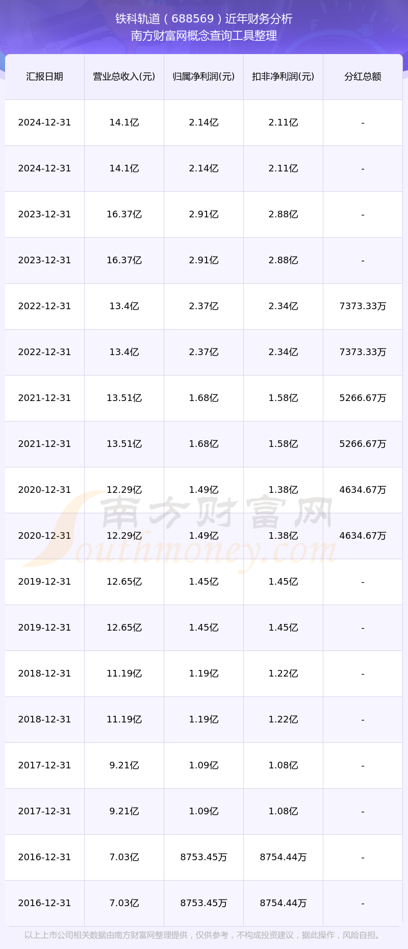 近年鐵科軌道分紅派息情況如下表所示: