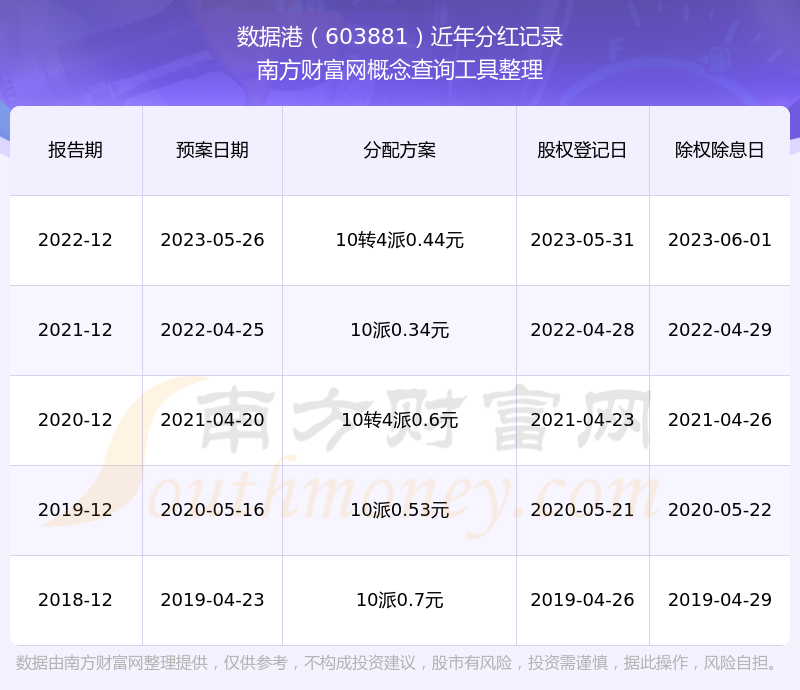 數(shù)據(jù)港最新一次公布的分紅方案:10轉(zhuǎn)4派0.44元。
