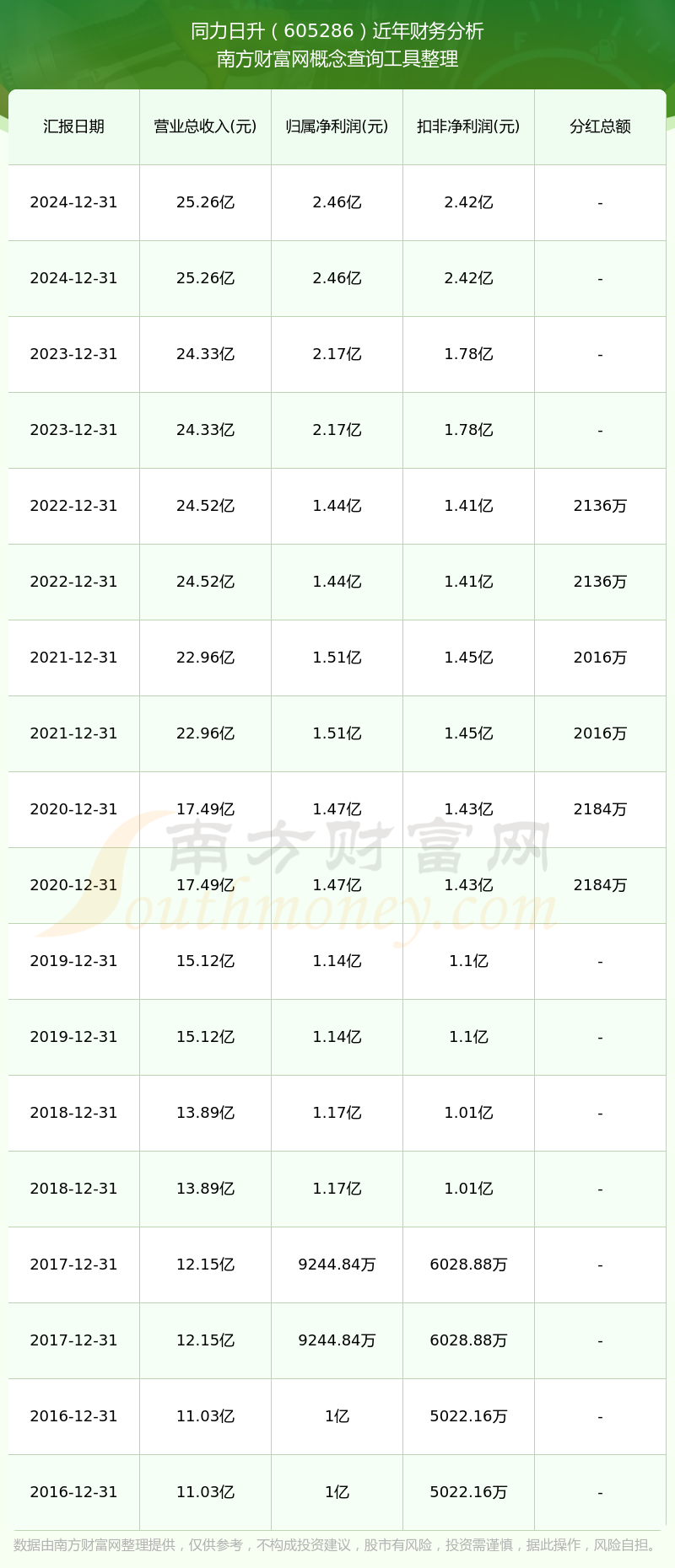 同力日升公司2024年實(shí)現(xiàn)營(yíng)業(yè)收入25.26億元,同比增長(zhǎng)3.82%;凈利潤(rùn)2.46億元,同比增長(zhǎng)13.48%;毛利率27.5%。