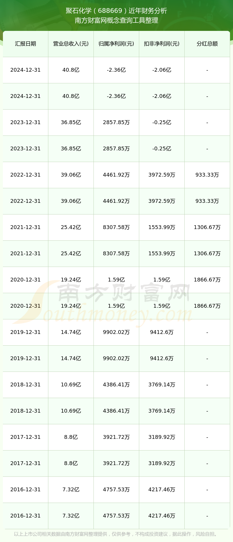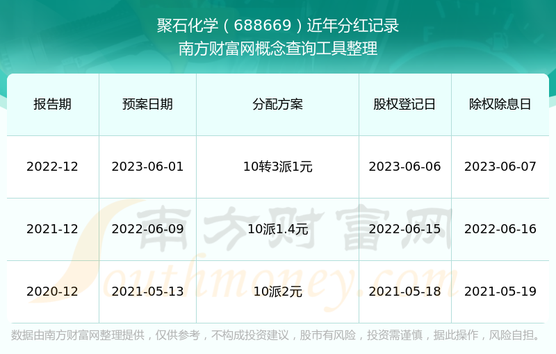 近年聚石化學(xué)分紅派息情況如下表所示: