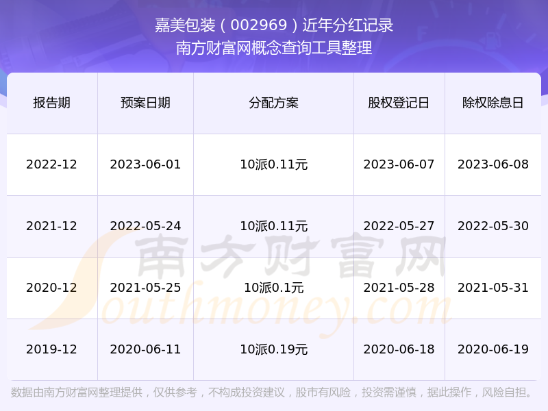 嘉美包裝最新一次公布的分紅方案:10派0.11元。