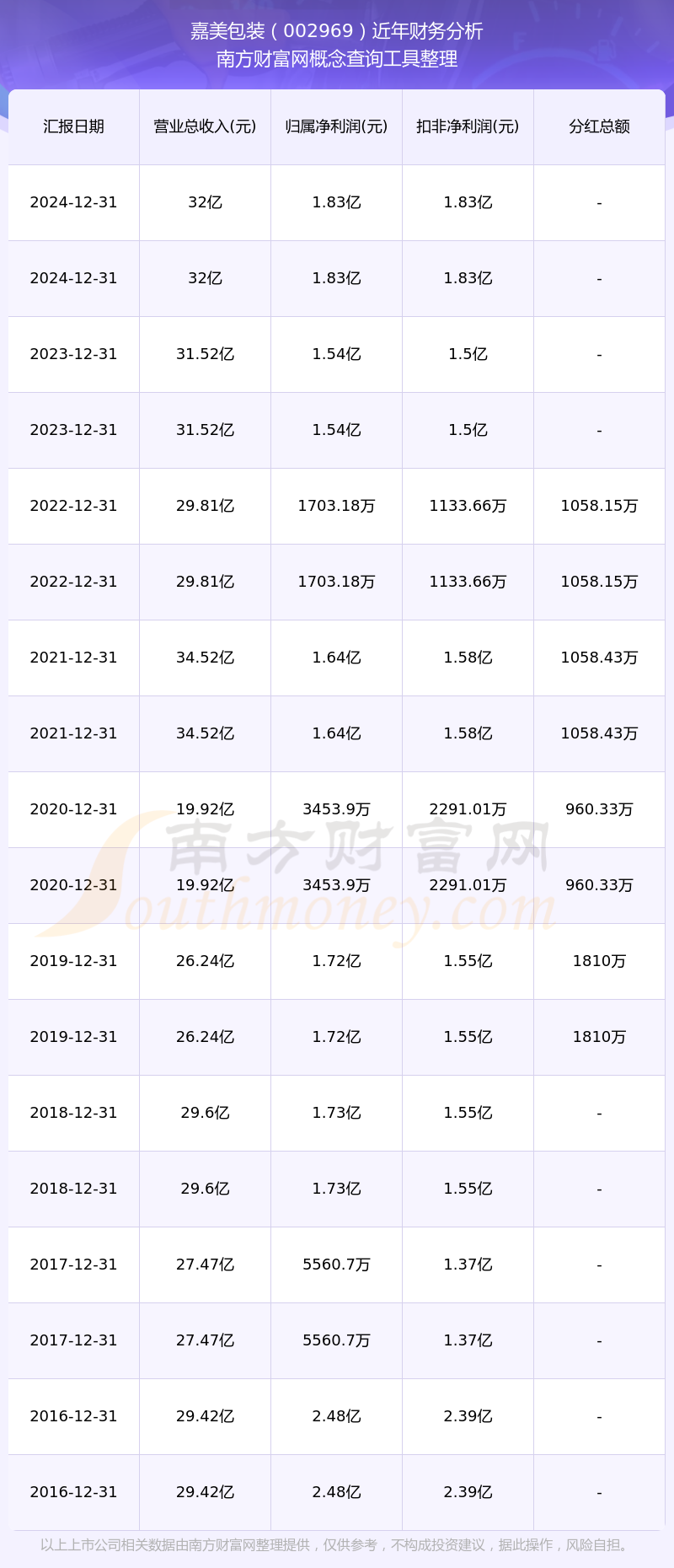 近年嘉美包裝分紅派息情況如下表所示: