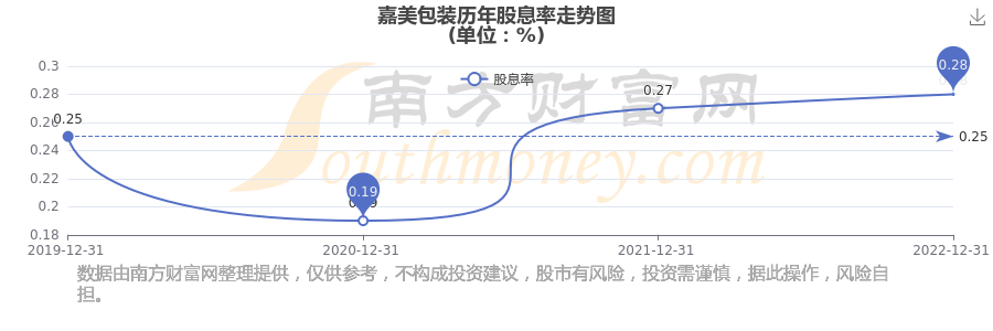 嘉美包裝歷年股息率走勢(shì)如下圖: