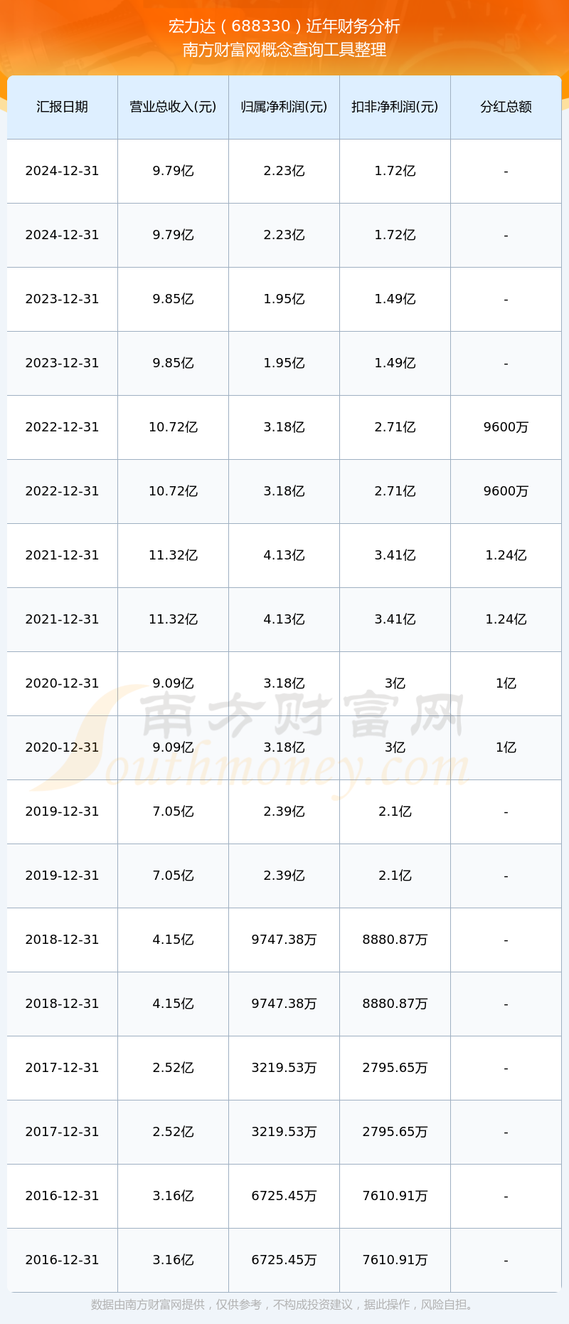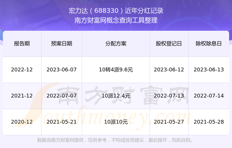 宏力達(dá)歷年分紅派息情況如下表所示: