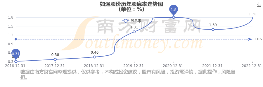 如通股份最新一次公布的分紅方案為10派1.9元。本次權(quán)益分派股權(quán)登記日為2023年5月30日,除權(quán)除息日為2023年5月31日,派息日為2023年5月31日。