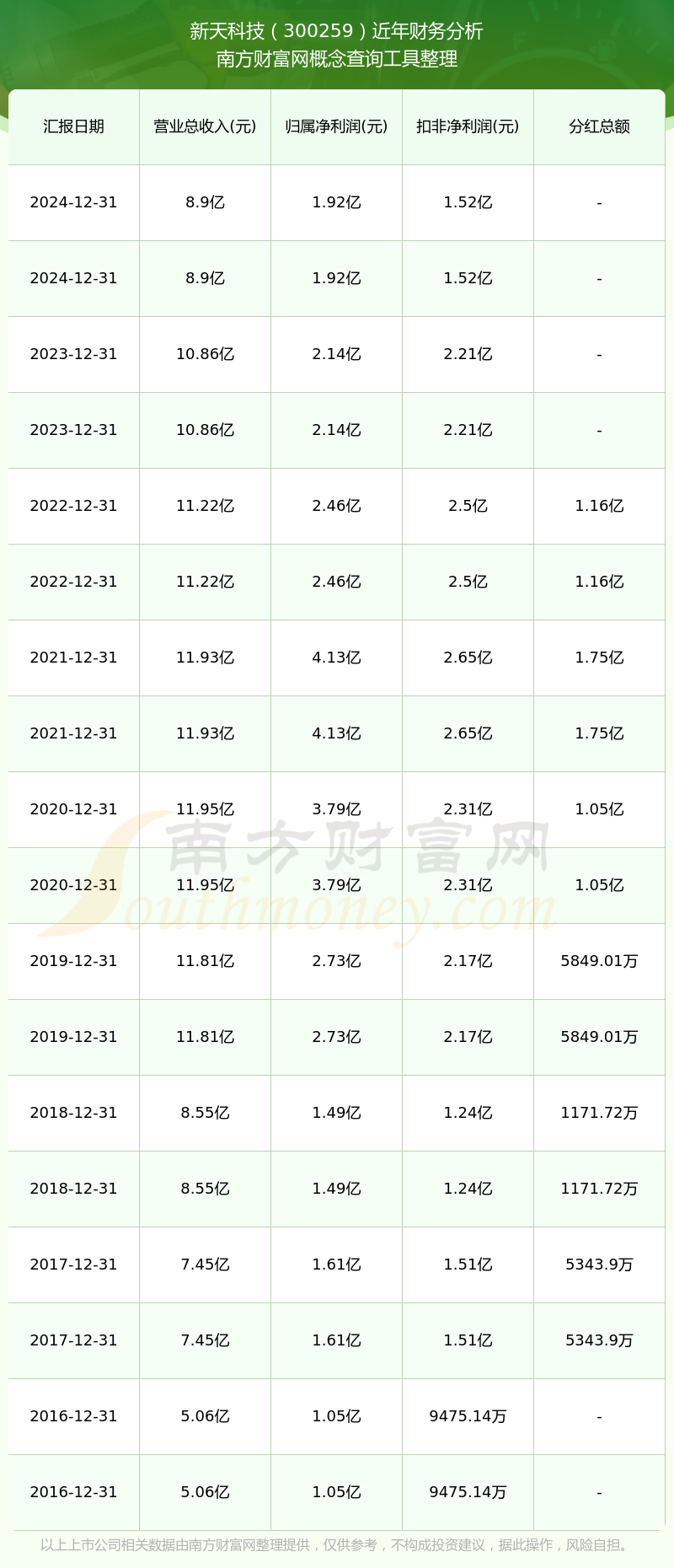 近年新天科技分紅派息情況如下表所示: