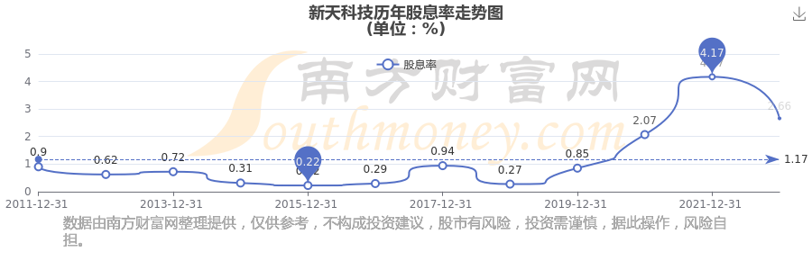新天科技?xì)v年股息率走勢如下圖: