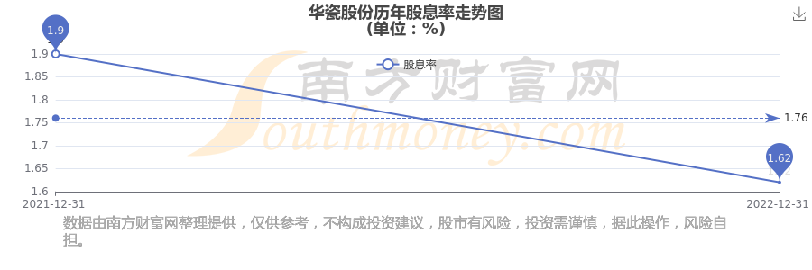 華瓷股份歷年股息率走勢(shì)如下圖: