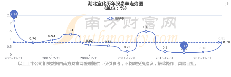 湖北宜化歷年股息率走勢(shì)如下圖:
