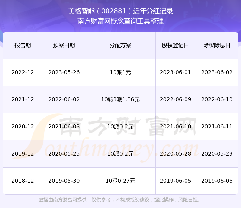 近年美格智能分紅派息情況如下表所示: