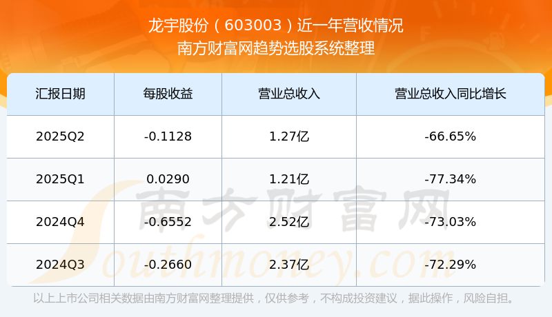 財(cái)報(bào)顯示,2025年第二季度龍宇股份營(yíng)收1.27億元,同比增長(zhǎng)-66.65%,凈利潤(rùn)-4245.24萬元,同比增長(zhǎng)-93329.43%。