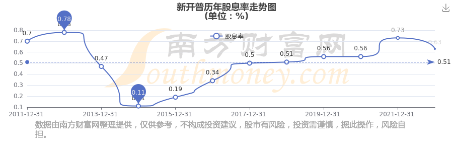 近年新開普年度股息率走勢如下圖: