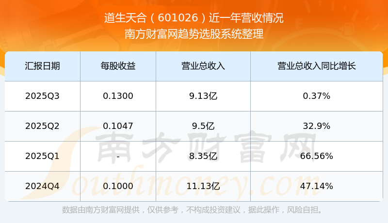 一、道生天合(601026)股票營收情況