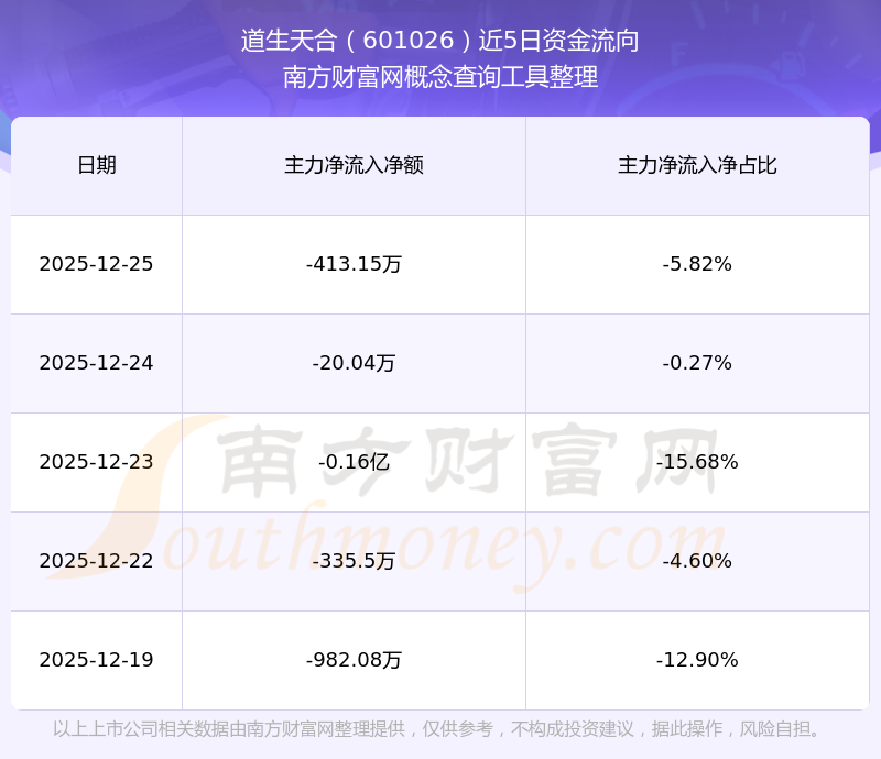 二、道生天合(601026)近期盤面、資金面情況