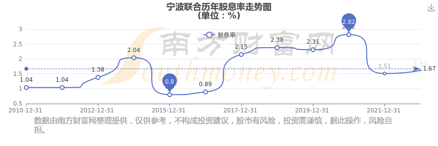 近年寧波聯(lián)合年度股息率走勢如下圖: