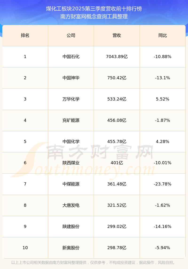按照南方財富網(wǎng)概念查詢工具統(tǒng)計,該股所屬板塊為煤化工板塊,該板塊共有121只股票,淮北礦業(yè)2025第三季度營收在該板塊中排名為第17名,該板塊2025第三季度營收排名前十的股票如下表: