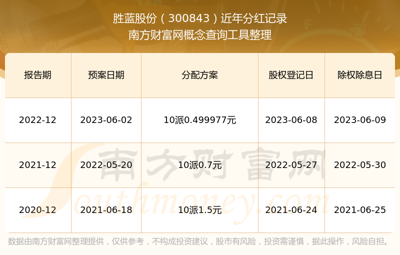 二、勝藍(lán)股份300843行業(yè)分紅排名