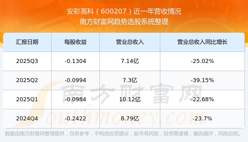 財報顯示,2025年第三季度安彩高科營收7.14億元,同比增長-25.02%,凈利潤-1.42億元,同比增長-41.77%。