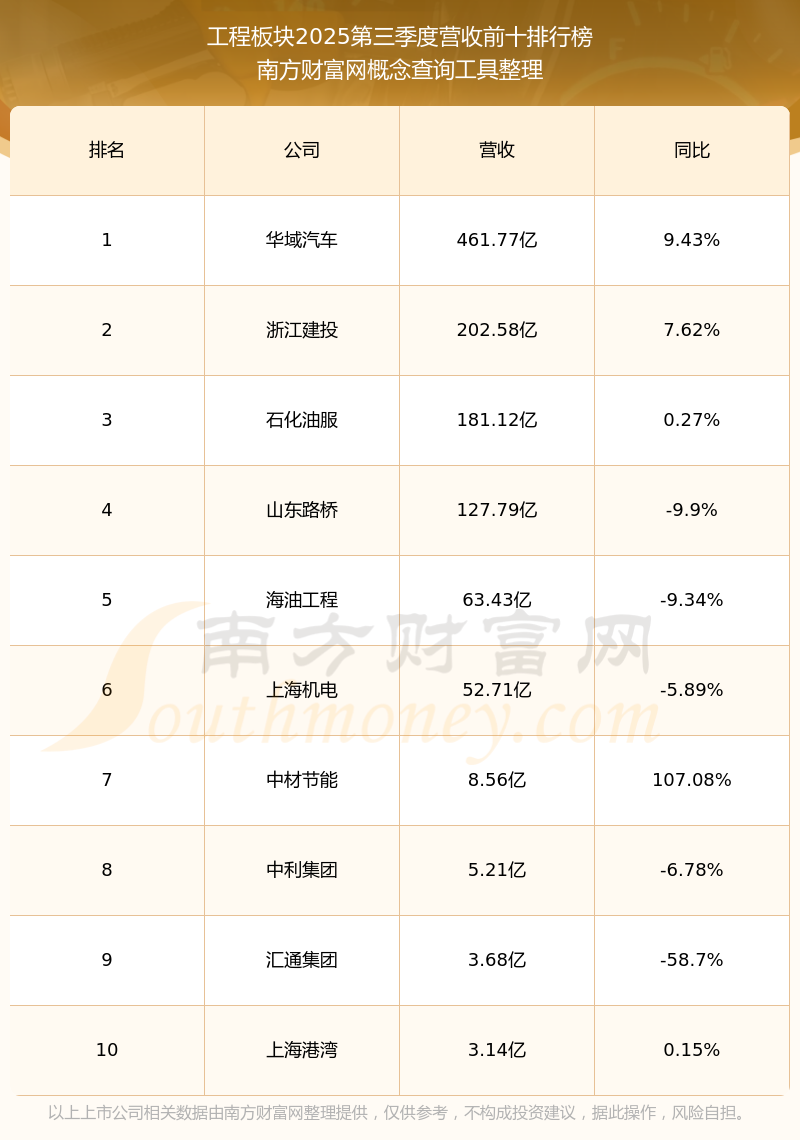 按照南方財(cái)富網(wǎng)概念查詢工具統(tǒng)計(jì),該股所屬板塊為工程板塊,該板塊共有12只股票,東方電氣2025第三季度營(yíng)收在該板塊中排名為第12名,該板塊2025第三季度營(yíng)收排名前十的股票如下表: