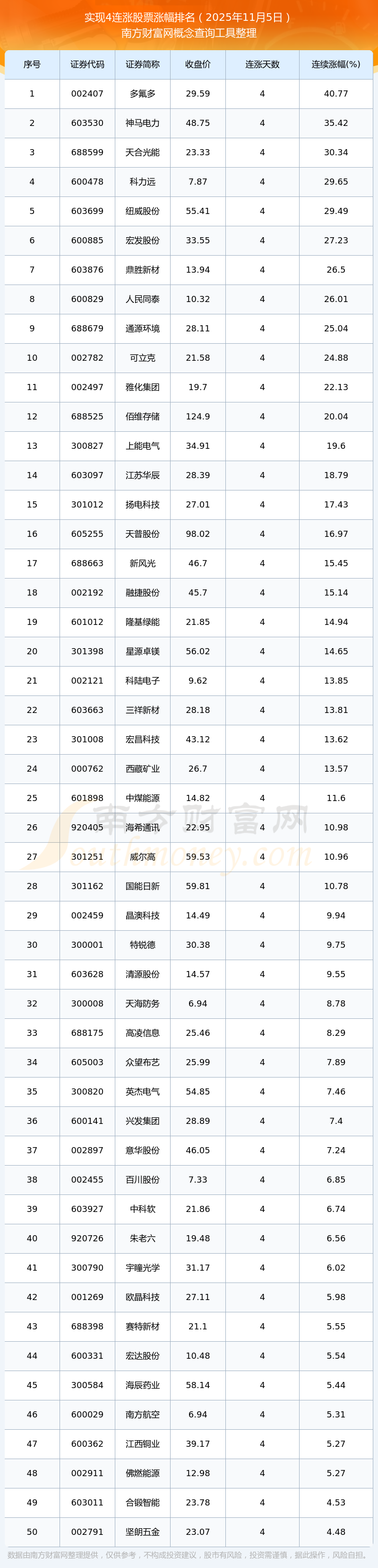 2025年11月5日實(shí)現(xiàn)4連漲股票漲幅排名
