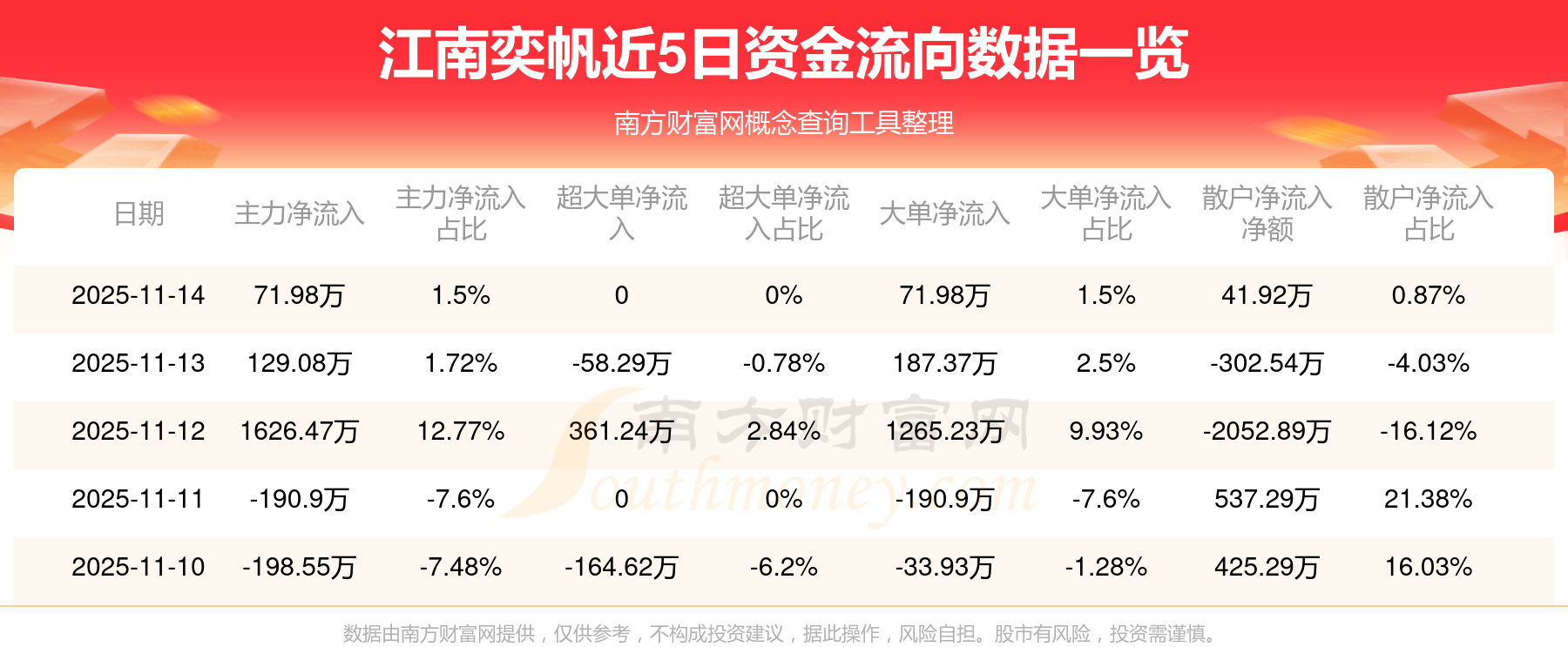 11月14日資金凈流入71.98萬元,換手率2.86%,成交金額4807.85萬元。