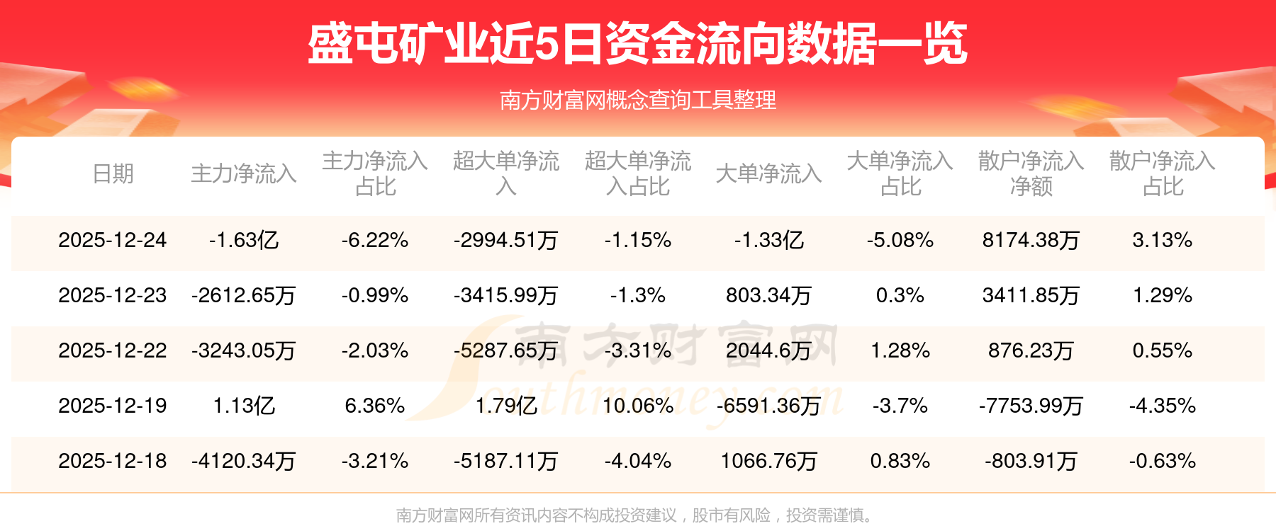 12月24日消息,盛屯礦業(yè)主力資金凈流出1.63億元,超大單資金凈流出2994.51萬(wàn)元,散戶資金凈流入8174.38萬(wàn)元。