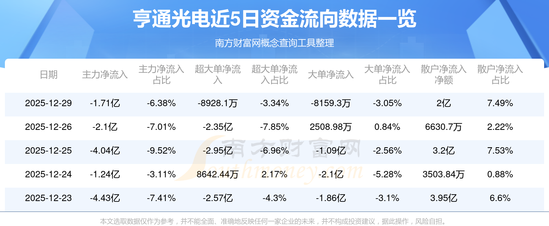 12月29日消息,亨通光電主力資金凈流出1.71億元,超大單資金凈流出8928.1萬元,散戶資金凈流入2億元。
