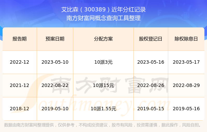 一、艾比森(300389)股票分紅記錄