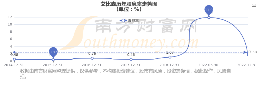 近年艾比森年度股息率走勢如下圖: