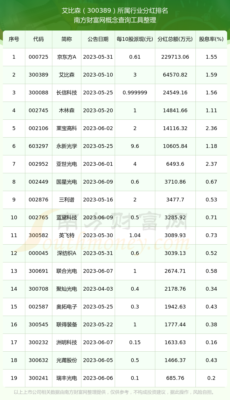 二、艾比森300389行業(yè)分紅排名