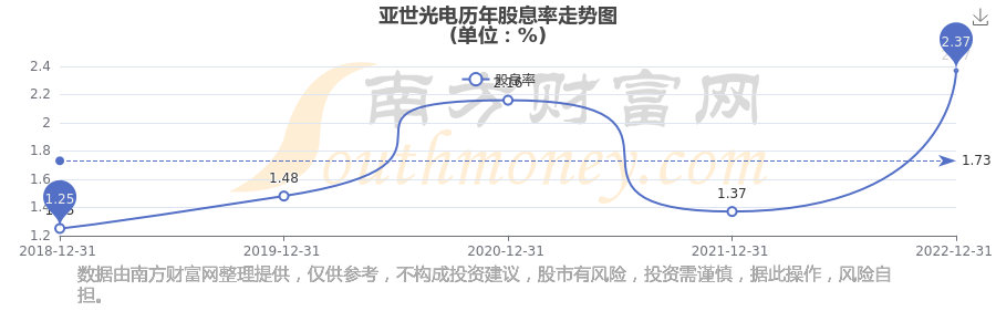 近年亞世光電年度股息率走勢如下圖: