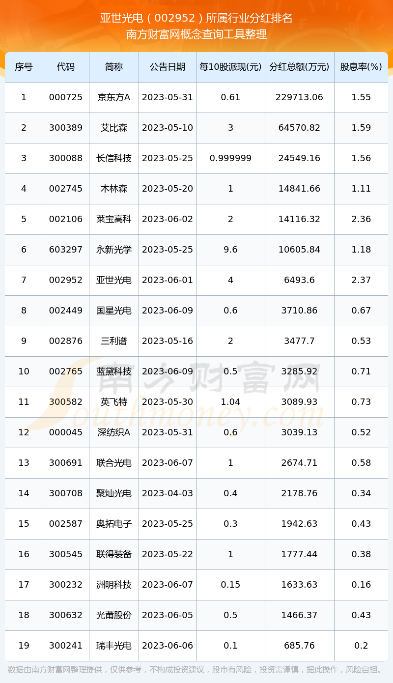 二、亞世光電002952行業(yè)分紅排名