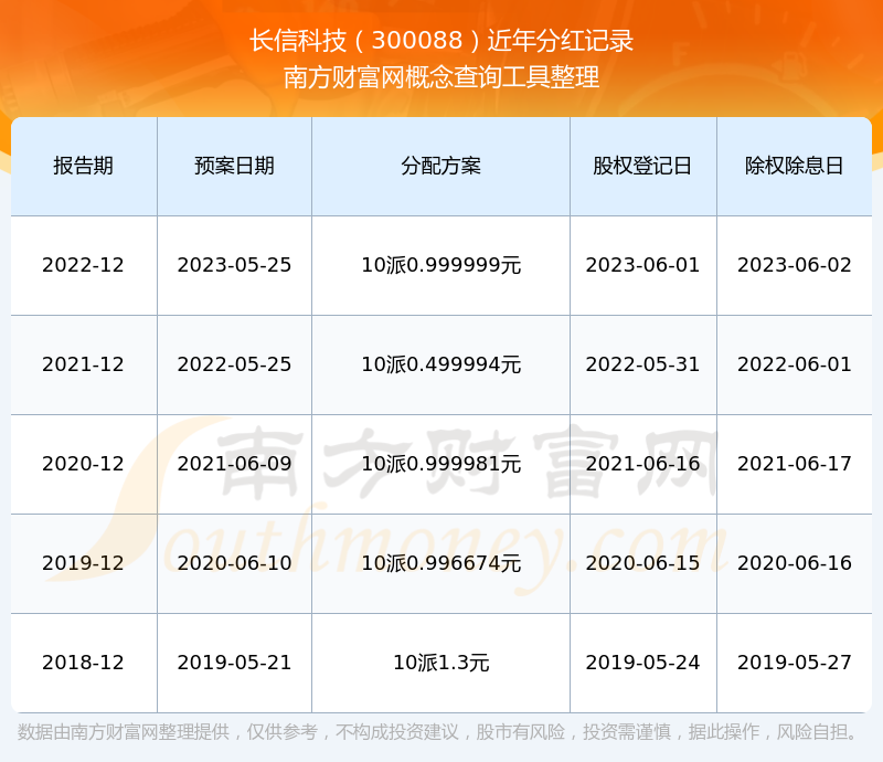 長信科技最新一次公布的分紅方案:10派0.999999元。